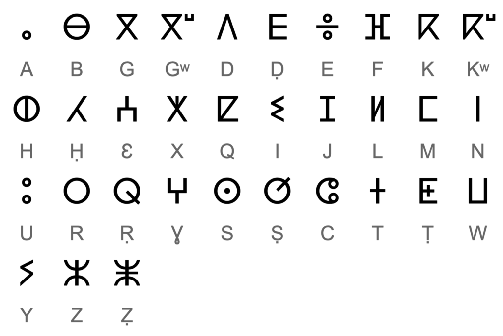 C’est l’alphabet utilisé pour transcrire les différentes variations du Tamazight. Il est documenté depuis le IIIe siècle avant J.-C.